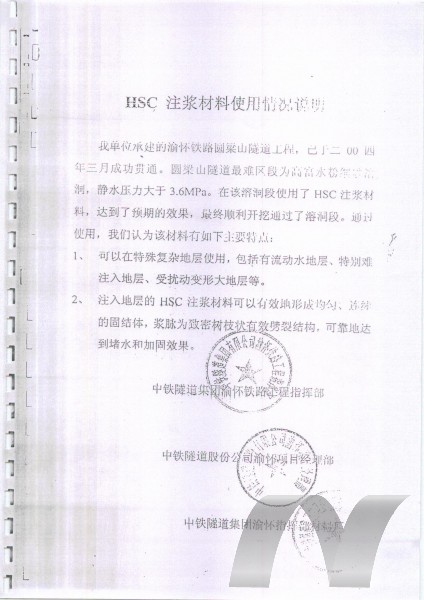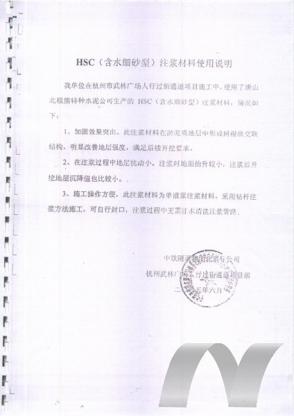 3、對地層擾動小:應(yīng)用HSC含水細(xì)砂型注漿材料,達(dá)到固結(jié)堵水要求的注漿壓力更小,所需注漿量更少,注漿均勻性更好。