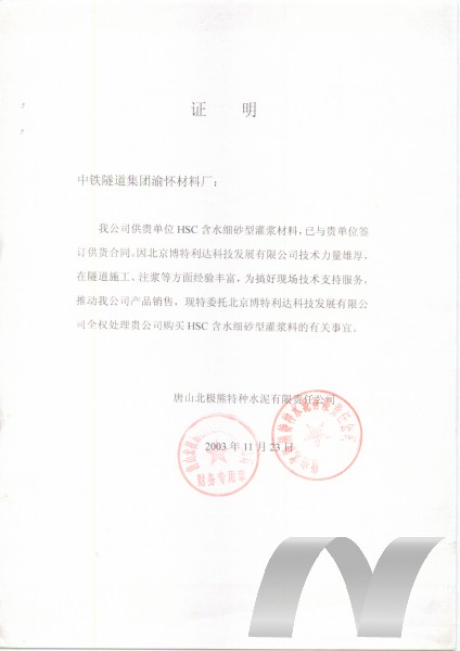 壓力泌水性,硫鋁酸鹽水泥的黏度和壓力泌水比硅酸鹽水泥小,HSC含水細(xì)砂型注漿材料使用的特制硫鋁酸鹽的黏度和